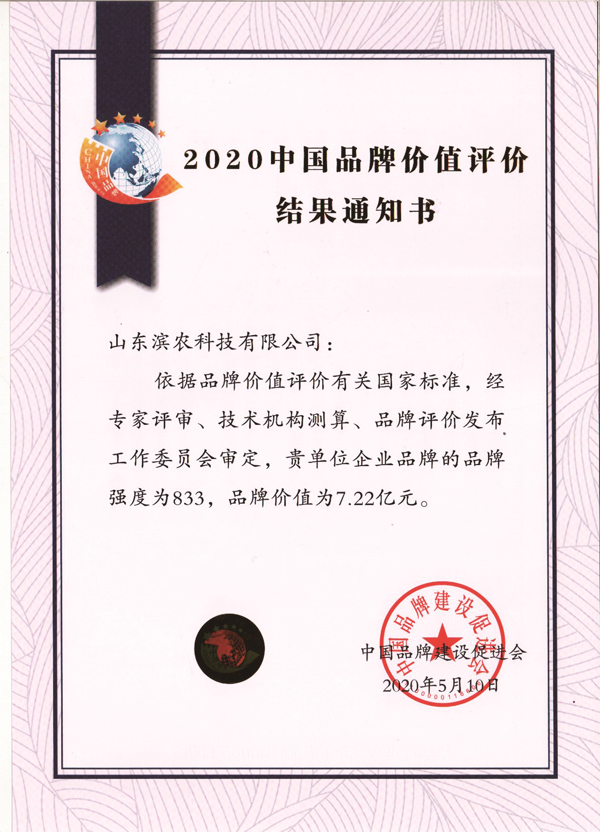■2020-05-10 我公司企業(yè)品牌的品牌強(qiáng)度為833,品牌價(jià)值為7.22億元
