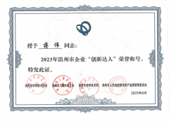 ■2023-10-09 我公司蔣偉榮獲2023年 濱州市企業(yè)“創(chuàng)新達人”榮譽稱號