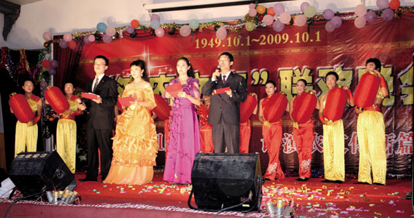 2009年9月30日晚,濱農(nóng)園內(nèi)歌舞歡騰,氣氛熱烈。濱農(nóng)科技 “迎祖國60華誕,譜濱農(nóng)文化新篇‘濱農(nóng)之聲’聯(lián)歡晚會(huì)”在西餐廳圓滿舉辦,來自各分廠車間部室的觀眾濟(jì)濟(jì)一堂,在歡呼互動(dòng)中和臺(tái)上的演員共同營造了一個(gè)愉快祥和快樂的夜晚。公司總經(jīng)理任立明為晚會(huì)致辭。