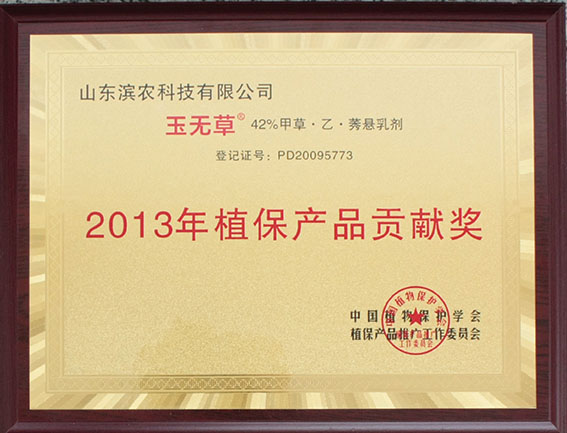 我公司產(chǎn)品“玉無(wú)草”榮獲“2013年植保產(chǎn)品貢獻(xiàn)獎(jiǎng)”