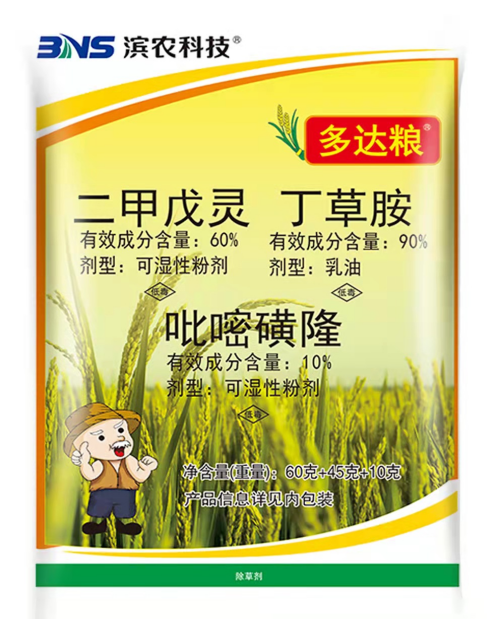 (一)旱直播稻封閉方案:推薦雷拿多、多達(dá)糧、濱農(nóng)美稻(建議混用稻斧)等。